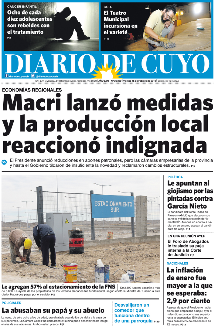 Diario de Cuyo | HOME | Noticias | Tapa Edición Tapa Edición 15 de Febrero 2019 Por Redacción Diario de Cuyo 15/02/2019 · 0:00 Escuchar la noticia Escuchar la noticia Your browser doesn’t support HTML5 audio Tapa Edición Ver los comentarios ›
