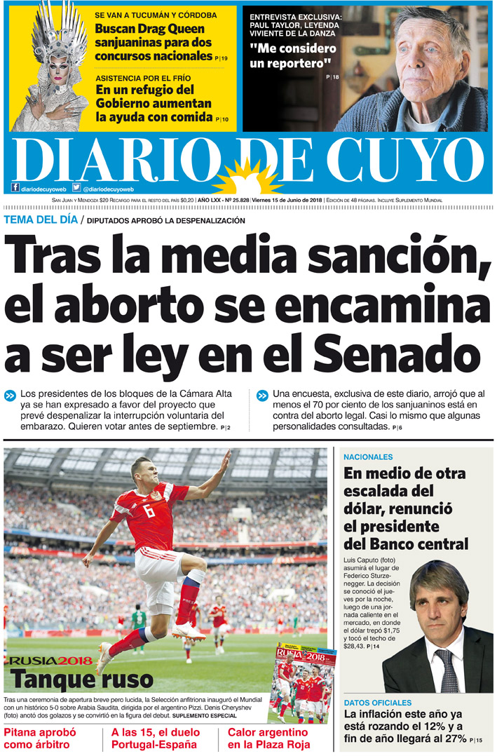 Diario de Cuyo | HOME | Noticias | Tapa Edición Tapa Edición 15 de Junio 2018 Por Redacción Diario de Cuyo 14/06/2018 · 0:00 Escuchar la noticia Escuchar la noticia Your browser doesn’t support HTML5 audio Tapa Edición Ver los comentarios ›