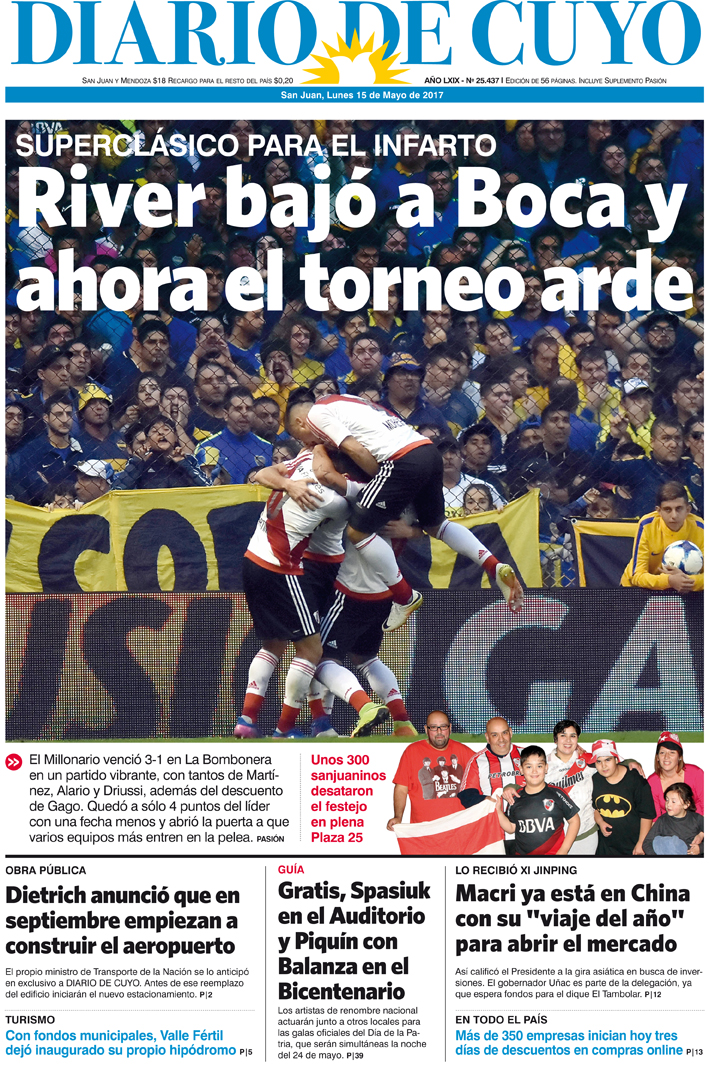 Diario de Cuyo | HOME | Noticias Tapa Edición 15 de Mayo de 2017 Por Redacción Diario de Cuyo 15/05/2017 · 0:00 Escuchar la noticia Escuchar la noticia Your browser doesn’t support HTML5 audio Ver los comentarios ›