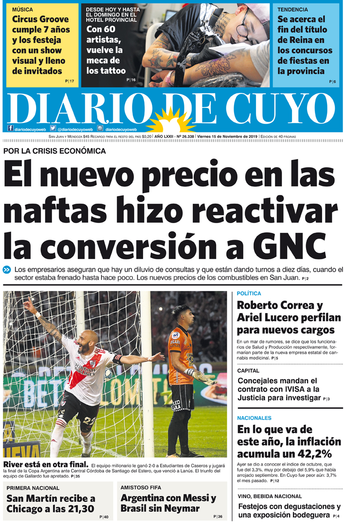 Diario de Cuyo | HOME | Noticias | Tapa Edición Tapa Edición 15 de Noviembre 2019 Por Redacción Diario de Cuyo 14/11/2019 · 0:00 Escuchar la noticia Escuchar la noticia Your browser doesn’t support HTML5 audio Tapa Edición Ver los comentarios ›