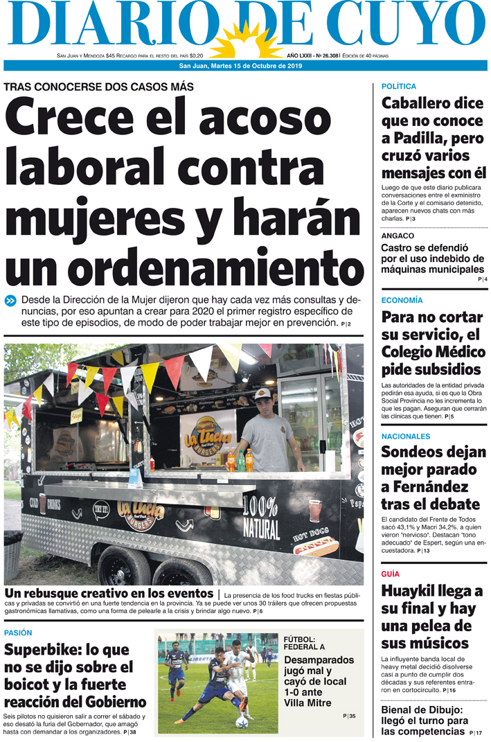 Diario de Cuyo | HOME | Noticias | Tapa Edición Tapa Edición 15 de Octubre 2019 Por Redacción Diario de Cuyo 14/10/2019 · 0:00 Escuchar la noticia Escuchar la noticia Your browser doesn’t support HTML5 audio Tapa Edición Ver los comentarios ›