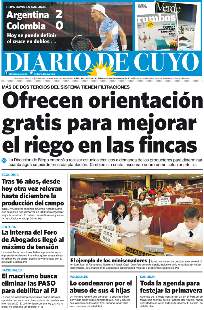 Diario de Cuyo | HOME | Noticias | Tapa Edición Tapa Edición 15 de Septiembre 2018 Por Redacción Diario de Cuyo 15/09/2018 · 0:00 Escuchar la noticia Escuchar la noticia Your browser doesn’t support HTML5 audio Tapa Edición Ver los comentarios ›