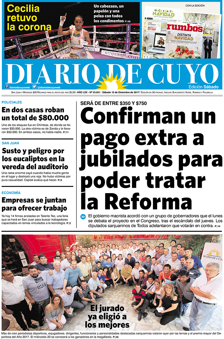 Diario de Cuyo | HOME | Noticias | Tapa Edición Tapa Edición 16 de Diciembre del 2017 Por Redacción Diario de Cuyo 16/12/2017 · 0:00 Escuchar la noticia Escuchar la noticia Your browser doesn’t support HTML5 audio Tapa Edición Ver los comentarios ›