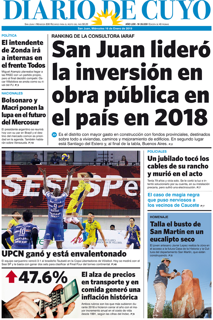 Diario de Cuyo | HOME | Noticias | Tapa Edición Tapa Edición 16 de Enero de 2019 Por Redacción Diario de Cuyo 15/01/2019 · 0:00 Escuchar la noticia Escuchar la noticia Your browser doesn’t support HTML5 audio Tapa Edición Ver los comentarios ›
