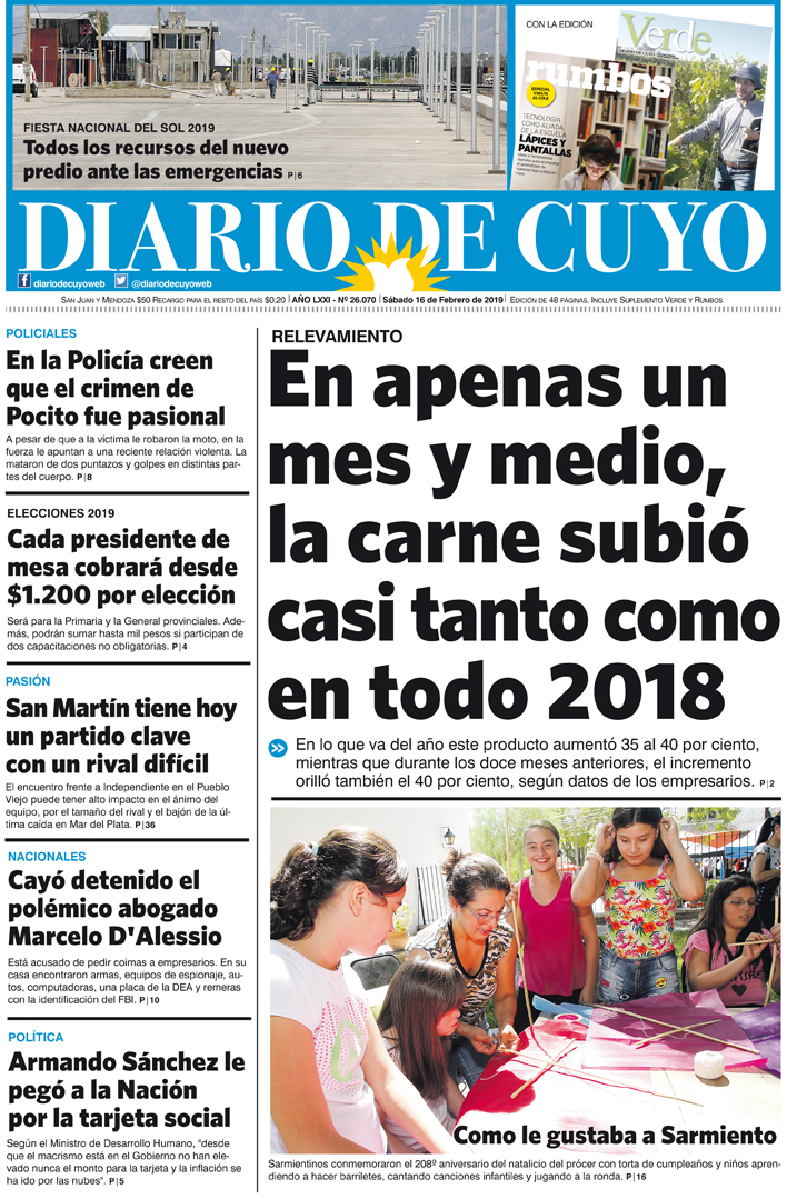 Diario de Cuyo | HOME | Noticias | Tapa Edición Tapa Edición 16 de Febrero 2019 Por Redacción Diario de Cuyo 15/02/2019 · 0:00 Escuchar la noticia Escuchar la noticia Your browser doesn’t support HTML5 audio Tapa Edición Ver los comentarios ›