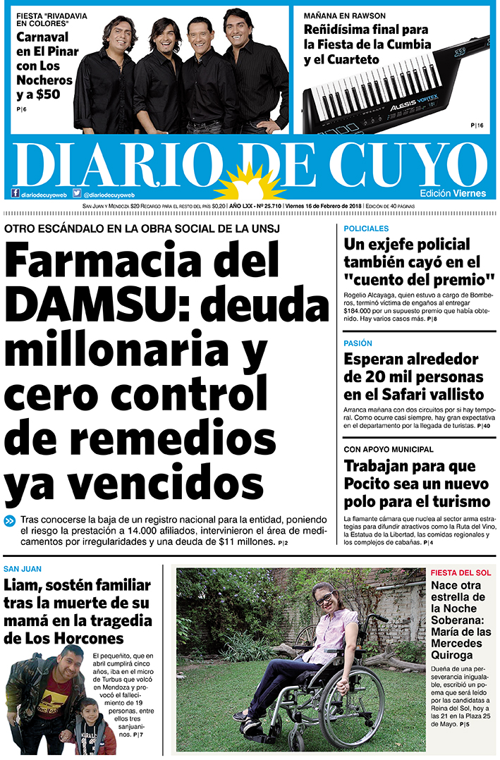 Diario de Cuyo | HOME | Noticias | Tapa Edición Tapa Edición 16 de Febrero del 2018 Por Redacción Diario de Cuyo 15/02/2018 · 0:00 Escuchar la noticia Escuchar la noticia Your browser doesn’t support HTML5 audio Tapa Edición Ver los comentarios ›
