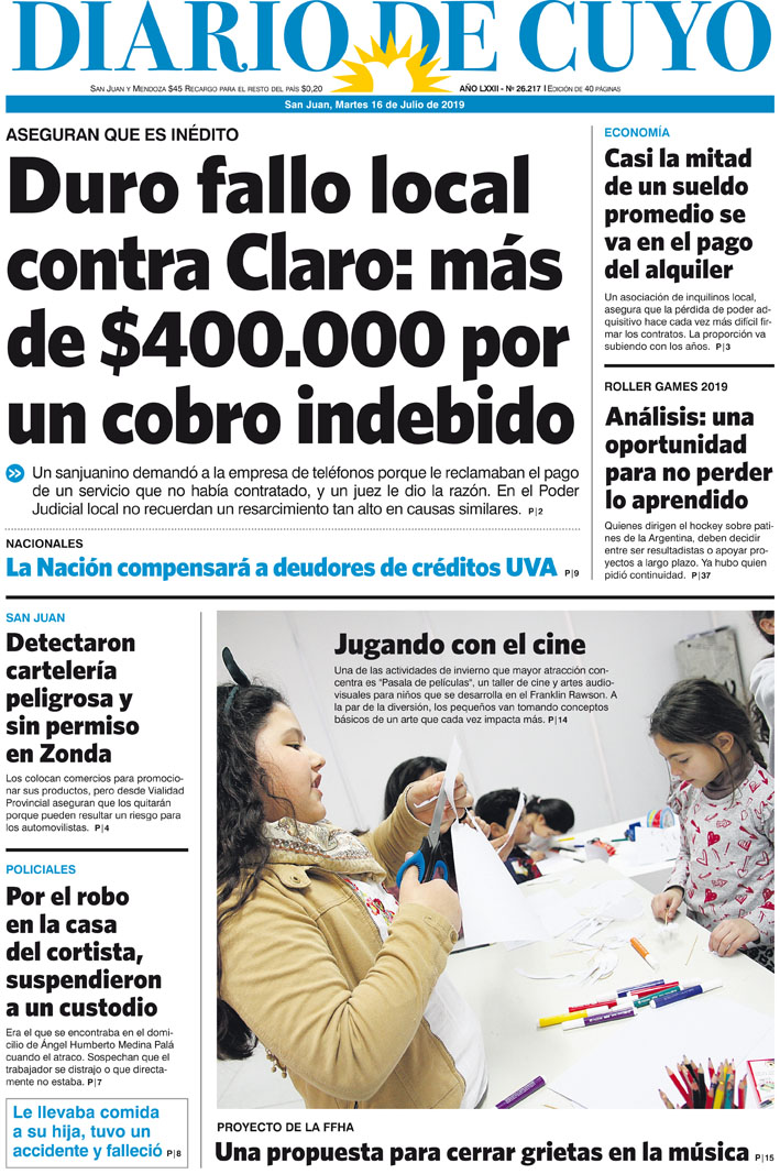 Diario de Cuyo | HOME | Noticias | Tapa Edición Tapa Edición 16 de Julio de 2019 Por Redacción Diario de Cuyo 15/07/2019 · 0:00 Escuchar la noticia Escuchar la noticia Your browser doesn’t support HTML5 audio Tapa Edición Ver los comentarios ›
