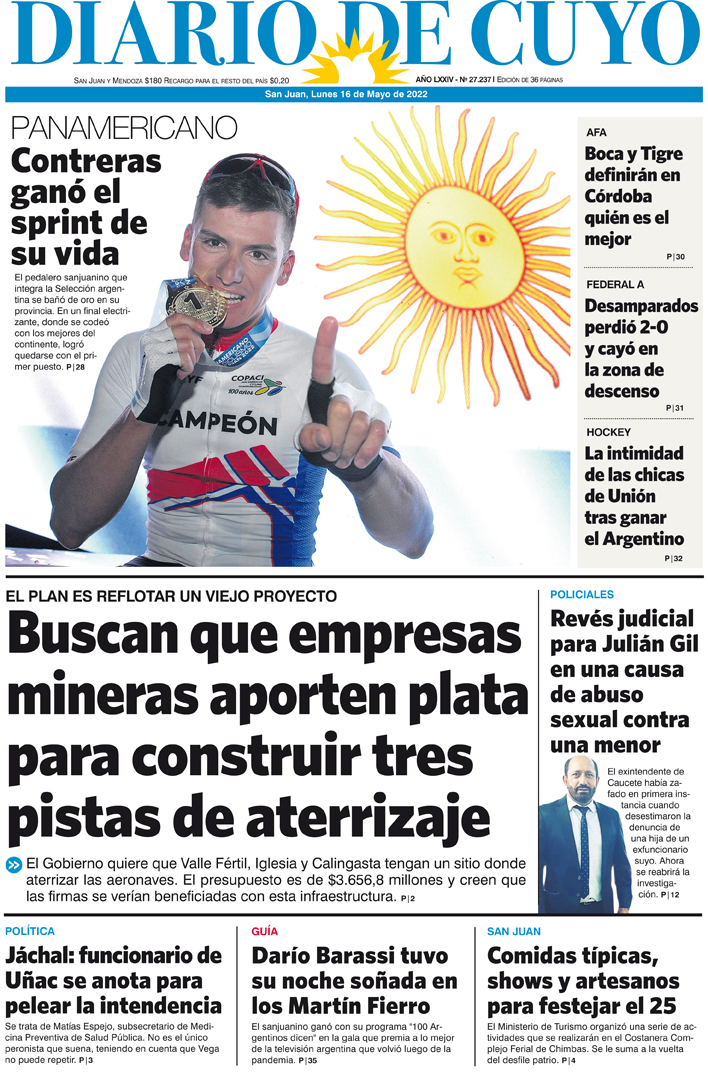Diario de Cuyo | HOME | Noticias Tapa Edición 16 de Mayo del 2022 Por Redacción Diario de Cuyo 16/05/2022 · 0:00 Escuchar la noticia Escuchar la noticia Your browser doesn’t support HTML5 audio Ver los comentarios ›