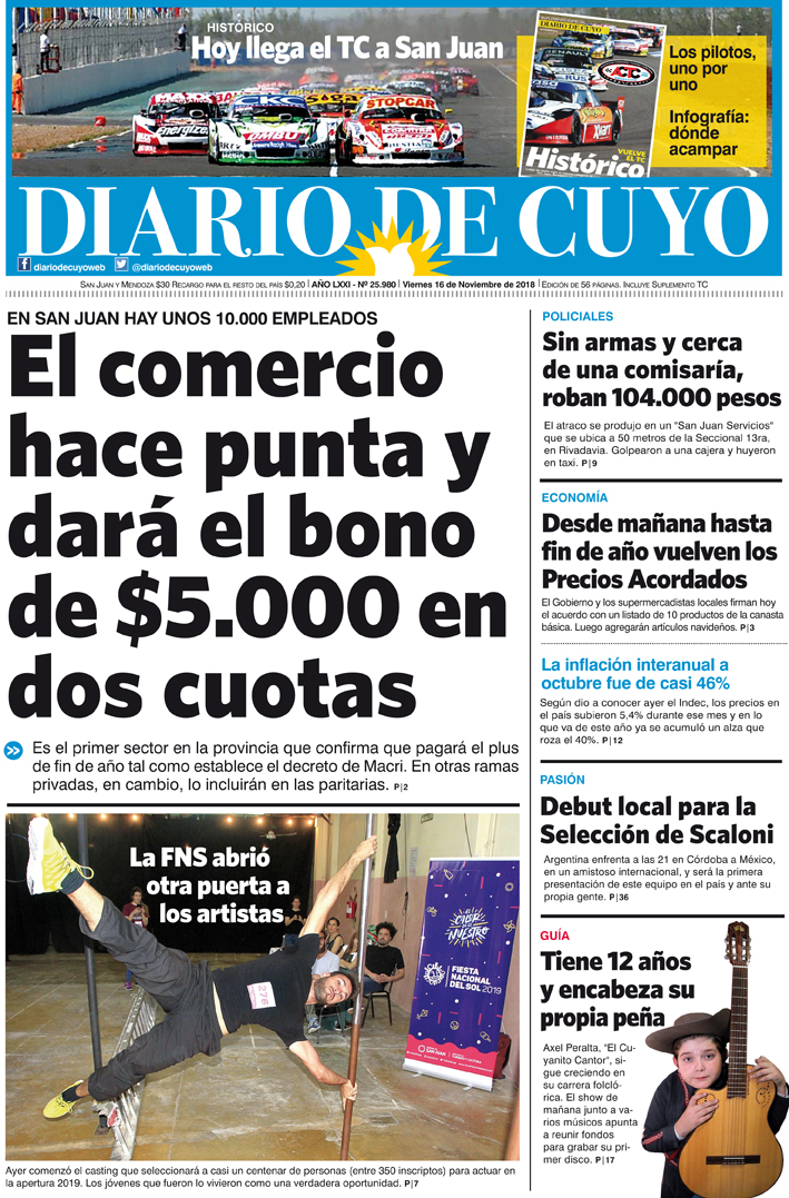 Diario de Cuyo | HOME | Noticias | Tapa Edición Tapa Edición 16 de Noviembre 2018 Por Redacción Diario de Cuyo 16/11/2018 · 0:00 Escuchar la noticia Escuchar la noticia Your browser doesn’t support HTML5 audio Tapa Edición Ver los comentarios ›