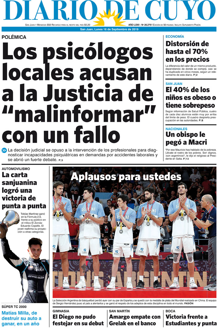 Diario de Cuyo | HOME | Noticias Tapa Edición 16 de Septiembre 2019 Por Redacción Diario de Cuyo 15/09/2019 · 0:00 Escuchar la noticia Escuchar la noticia Your browser doesn’t support HTML5 audio Ver los comentarios ›