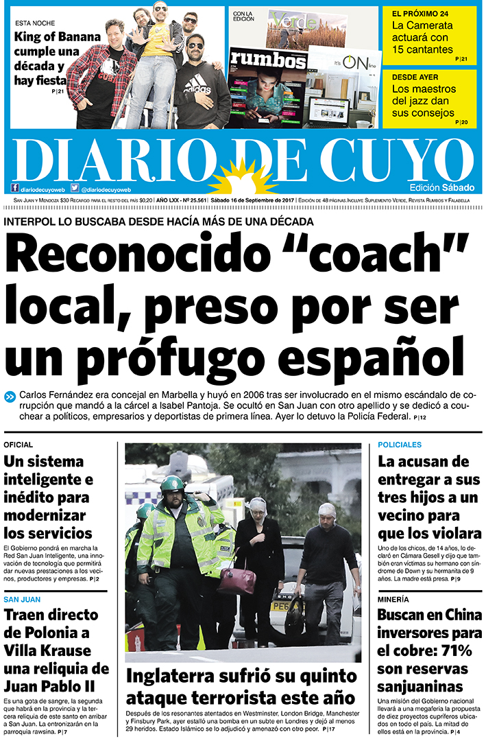 Diario de Cuyo | HOME | Noticias Tapa Edición 16 de Septiembre del 2017 Por Redacción Diario de Cuyo 16/09/2017 · 0:00 Escuchar la noticia Escuchar la noticia Your browser doesn’t support HTML5 audio Ver los comentarios ›