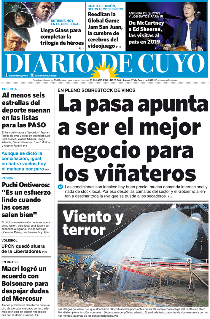 Diario de Cuyo | HOME | Noticias | Tapa Edición Tapa Edición 17 de Enero de 2019 Por Redacción Diario de Cuyo 17/01/2019 · 0:00 Escuchar la noticia Escuchar la noticia Your browser doesn’t support HTML5 audio Tapa Edición Ver los comentarios ›