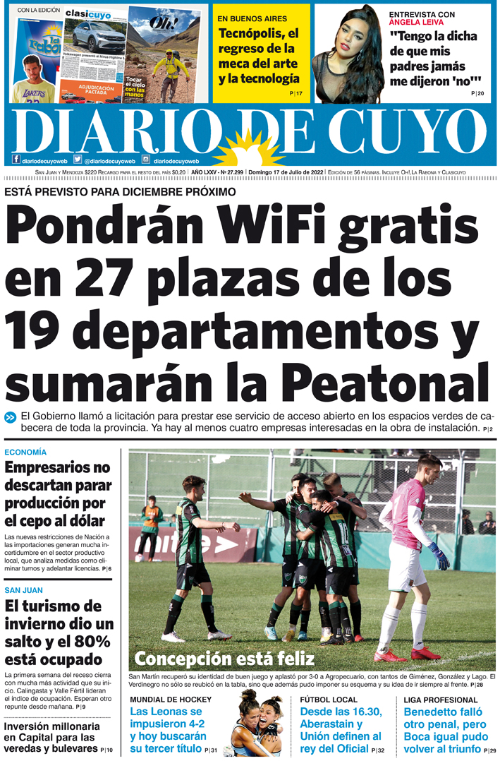 Diario de Cuyo | HOME | Noticias Tapa Edición 17 de Julio de 2022 Por Redacción Diario de Cuyo 16/07/2022 · 0:00 Escuchar la noticia Escuchar la noticia Your browser doesn’t support HTML5 audio Ver los comentarios ›
