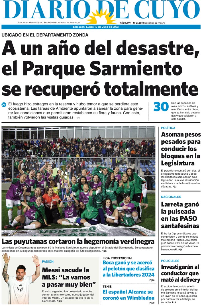 Diario de Cuyo | HOME | Noticias Tapa Edición 17 de Julio del 2023 Por Redacción Diario de Cuyo 16/07/2023 · 0:00 Escuchar la noticia Escuchar la noticia Your browser doesn’t support HTML5 audio Ver los comentarios ›