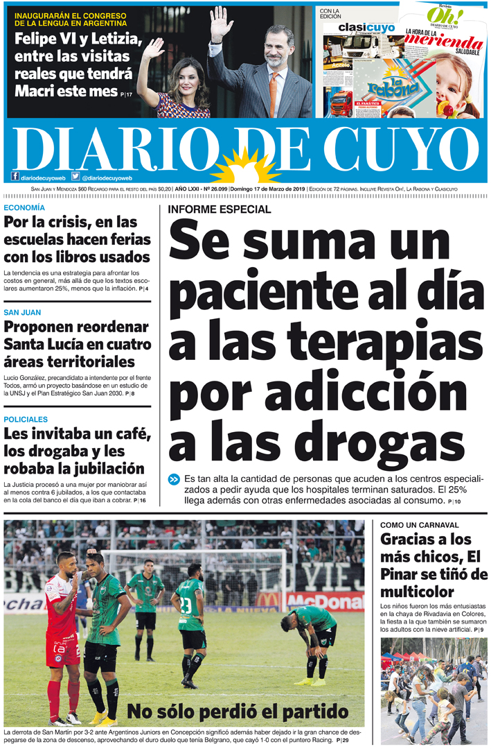 Diario de Cuyo | HOME | Noticias | Tapa Edición Tapa Edición 17 de Marzo de 2019 Por Redacción Diario de Cuyo 17/03/2019 · 0:00 Escuchar la noticia Escuchar la noticia Your browser doesn’t support HTML5 audio Tapa Edición Ver los comentarios ›