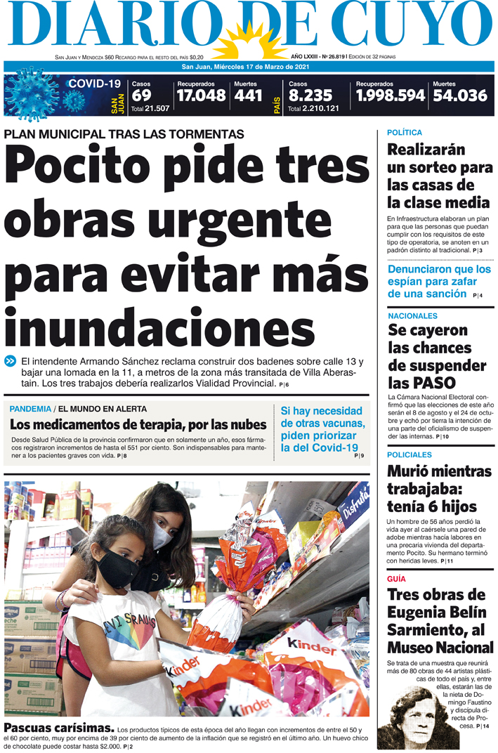 Diario de Cuyo | HOME | Noticias Tapa Edición 17 de Marzo del 2021 Por Redacción Diario de Cuyo 16/03/2021 · 0:00 Escuchar la noticia Escuchar la noticia Your browser doesn’t support HTML5 audio Ver los comentarios ›