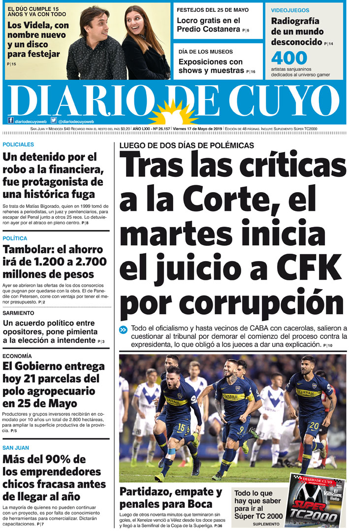 Diario de Cuyo | HOME | Noticias | Tapa Edición Tapa Edición 17 de Mayo de 2019 Por Redacción Diario de Cuyo 17/05/2019 · 0:00 Escuchar la noticia Escuchar la noticia Your browser doesn’t support HTML5 audio Tapa Edición Ver los comentarios ›