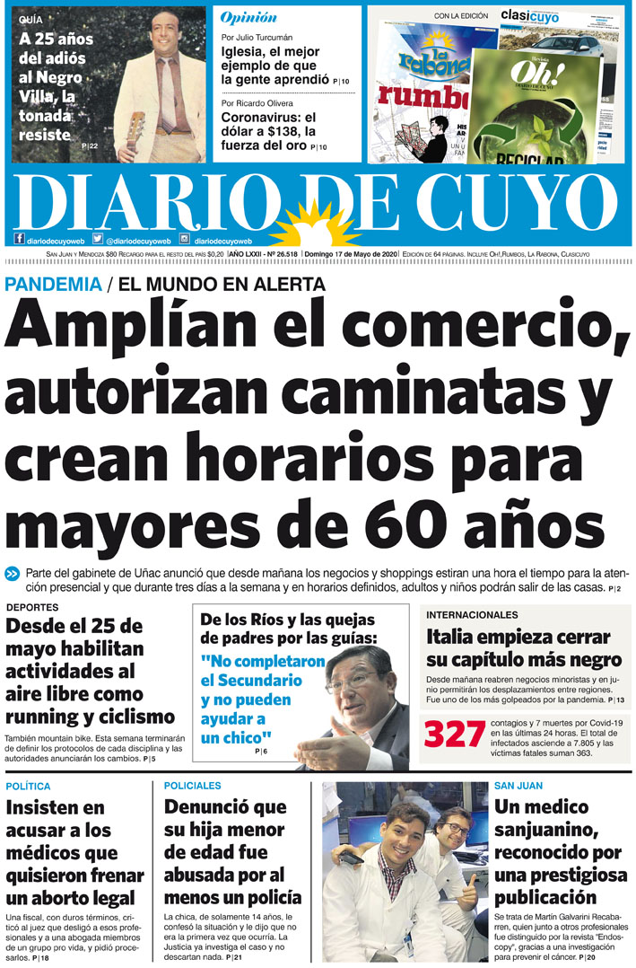 Diario de Cuyo | HOME | Noticias Tapa Edición 17 de Mayo del 2020 Por Redacción Diario de Cuyo 16/05/2020 · 0:00 Escuchar la noticia Escuchar la noticia Your browser doesn’t support HTML5 audio Ver los comentarios ›