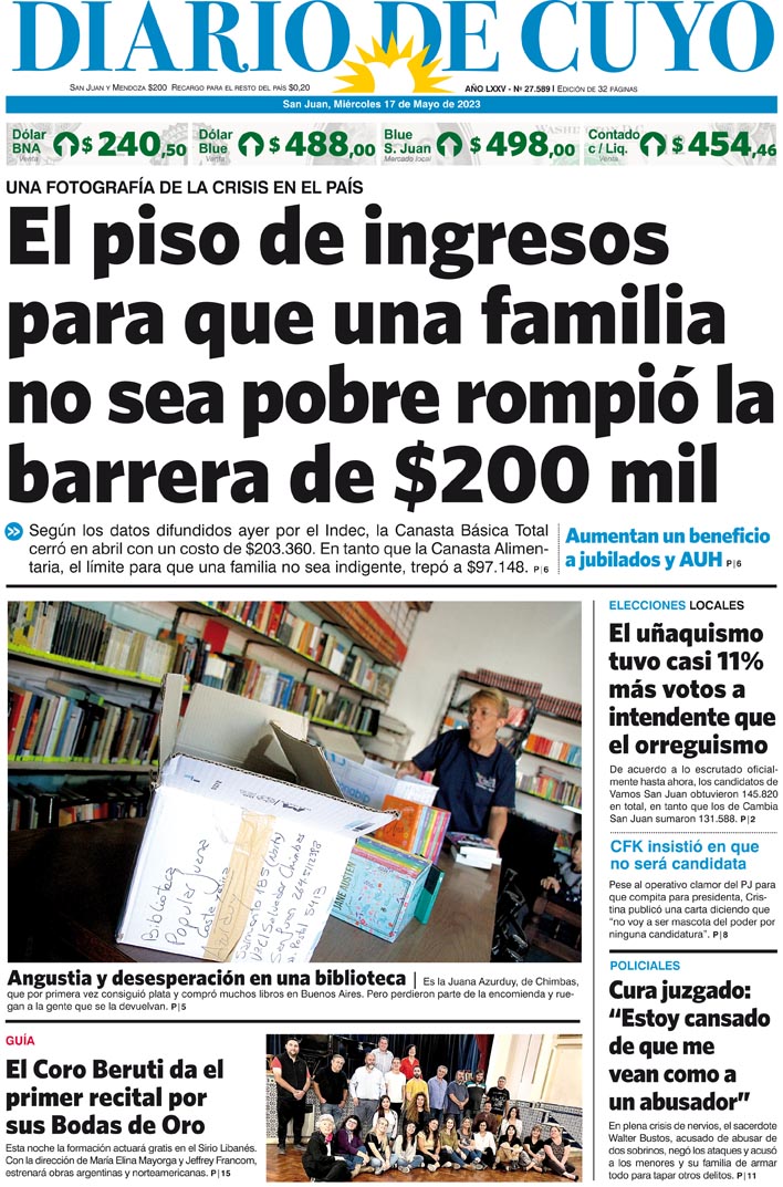 Diario de Cuyo | HOME | Noticias Tapa Edición 17 de Mayo del 2023 Por Redacción Diario de Cuyo 16/05/2023 · 0:00 Escuchar la noticia Escuchar la noticia Your browser doesn’t support HTML5 audio Ver los comentarios ›
