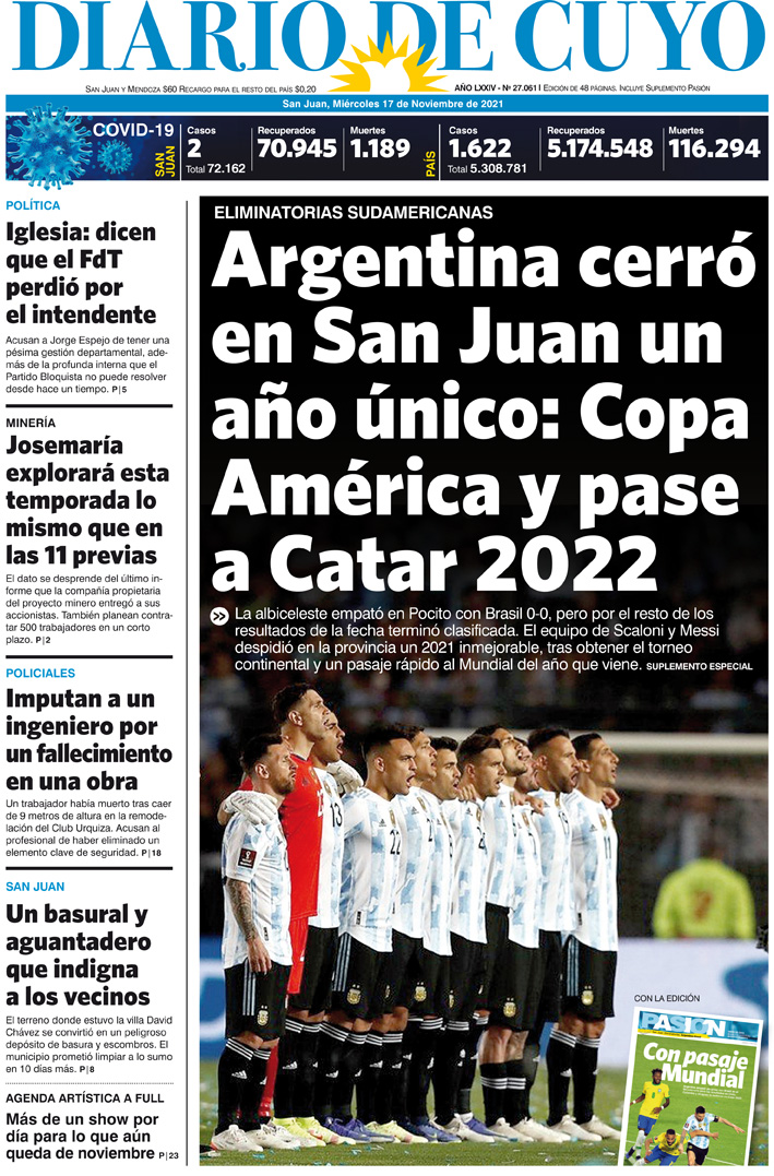 Diario de Cuyo | HOME | Noticias Tapa Edición 17 de Noviembre del 2021 Por Redacción Diario de Cuyo 17/11/2021 · 0:00 Escuchar la noticia Escuchar la noticia Your browser doesn’t support HTML5 audio Ver los comentarios ›