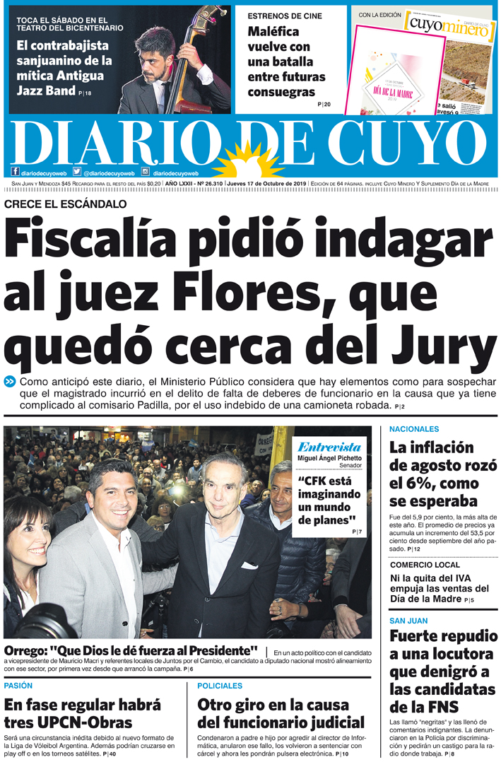 Diario de Cuyo | HOME | Noticias | Tapa Edición Tapa Edición 17 de Octubre 2019 Por Redacción Diario de Cuyo 17/10/2019 · 0:00 Escuchar la noticia Escuchar la noticia Your browser doesn’t support HTML5 audio Tapa Edición Ver los comentarios ›