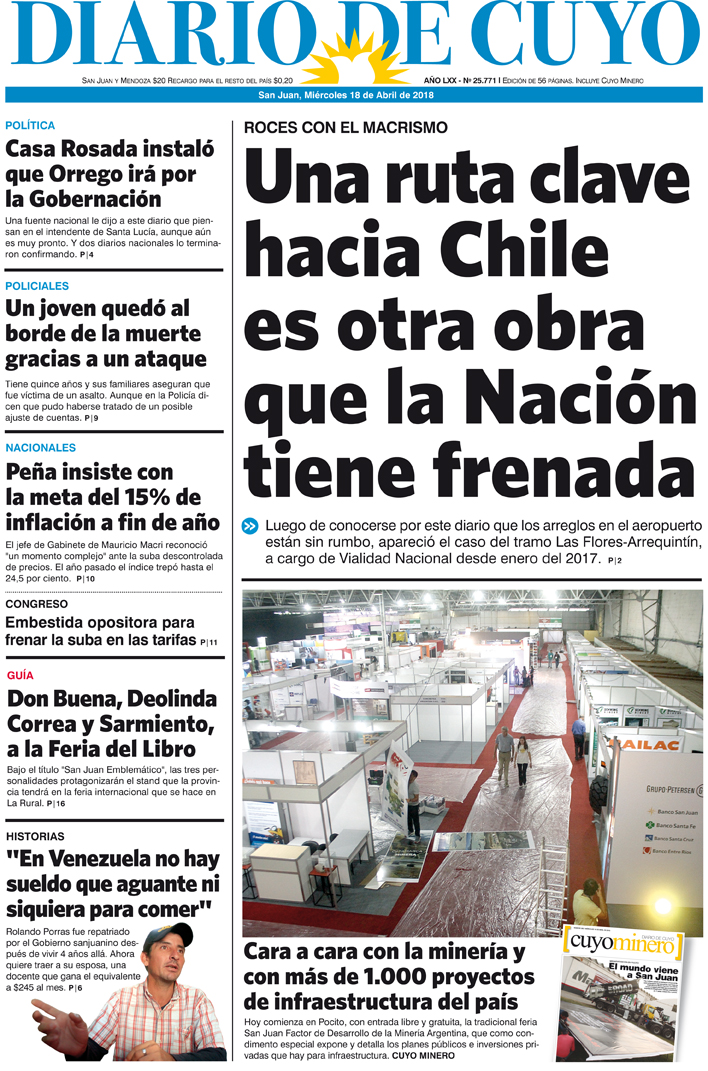 Diario de Cuyo | HOME | Noticias | Tapa Edición Tapa Edición 18 de Abril del 2018 Por Redacción Diario de Cuyo 18/04/2018 · 0:00 Escuchar la noticia Escuchar la noticia Your browser doesn’t support HTML5 audio Tapa Edición Ver los comentarios ›