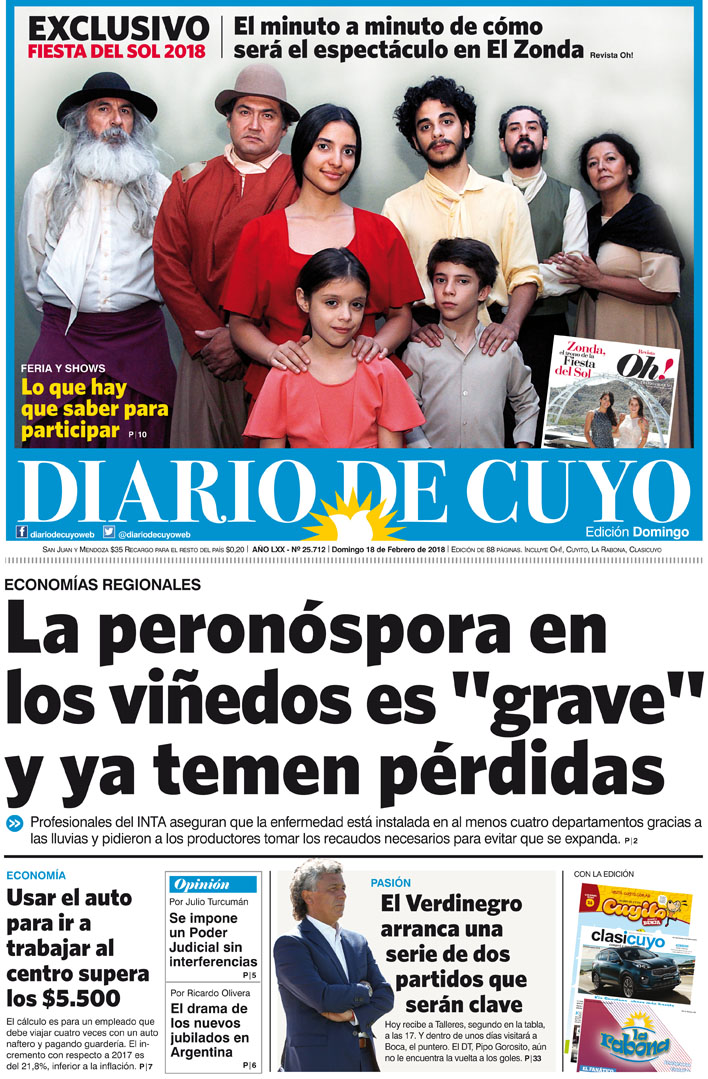 Diario de Cuyo | HOME | Noticias | Tapa Edición Tapa Edición 18 de Febrero del 2018 Por Redacción Diario de Cuyo 18/02/2018 · 0:00 Escuchar la noticia Escuchar la noticia Your browser doesn’t support HTML5 audio Tapa Edición Ver los comentarios ›