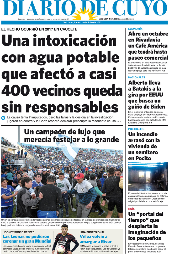 Diario de Cuyo | HOME | Noticias Tapa Edición 18 de Julio del 2022 Por Redacción Diario de Cuyo 17/07/2022 · 0:00 Escuchar la noticia Escuchar la noticia Your browser doesn’t support HTML5 audio Ver los comentarios ›