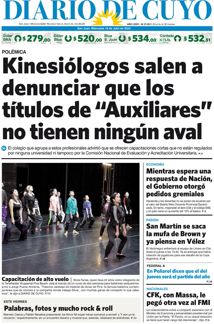 Diario de Cuyo | HOME | Noticias Tapa Edición 18 de Julio del 2023 Por Redacción Diario de Cuyo 17/07/2023 · 0:00 Escuchar la noticia Escuchar la noticia Your browser doesn’t support HTML5 audio Ver los comentarios ›