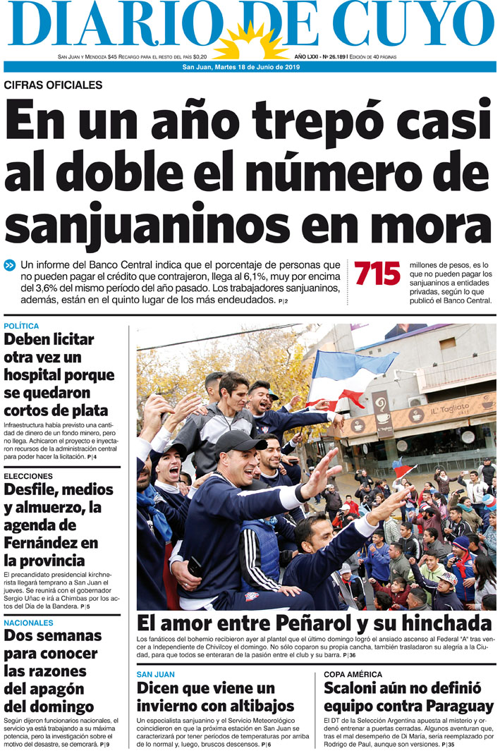 Diario de Cuyo | HOME | Noticias | Tapa Edición Tapa Edición 18 de Junio de 2019 Por Redacción Diario de Cuyo 17/06/2019 · 0:00 Escuchar la noticia Escuchar la noticia Your browser doesn’t support HTML5 audio Tapa Edición Ver los comentarios ›