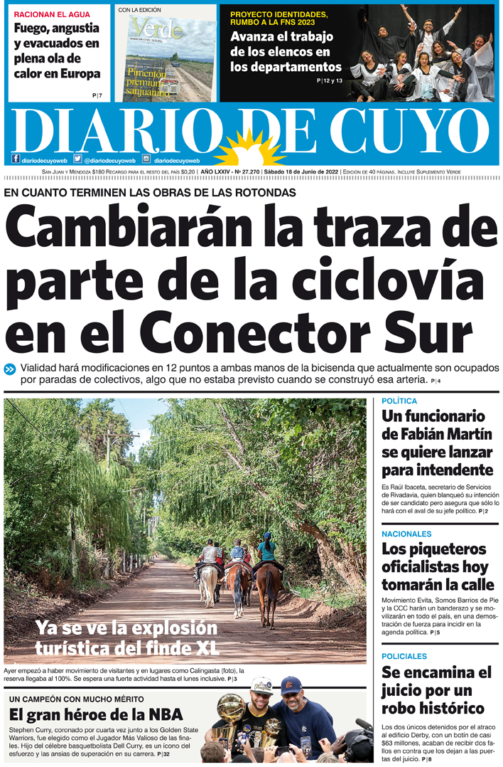 Diario de Cuyo | HOME | Noticias Tapa Edición 18 de Junio del 2022 Por Redacción Diario de Cuyo 17/06/2022 · 0:00 Escuchar la noticia Escuchar la noticia Your browser doesn’t support HTML5 audio Ver los comentarios ›