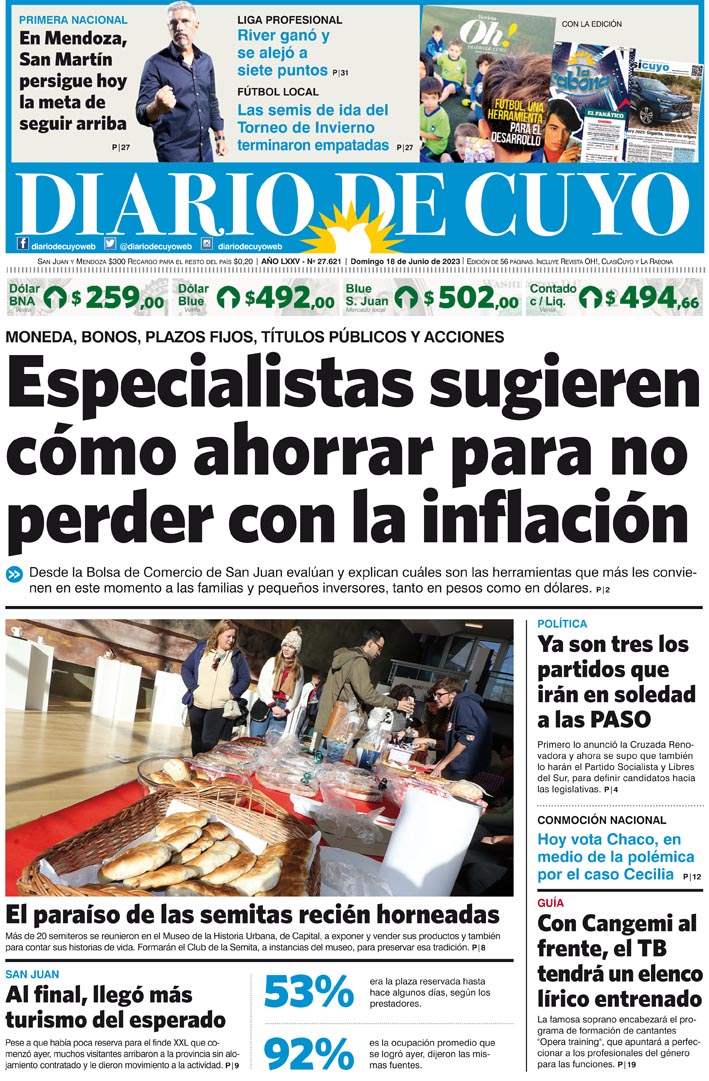 Diario de Cuyo | HOME | Noticias Tapa Edición 18 de Junio del 2023 Por Redacción Diario de Cuyo 18/06/2023 · 0:00 Escuchar la noticia Escuchar la noticia Your browser doesn’t support HTML5 audio Ver los comentarios ›