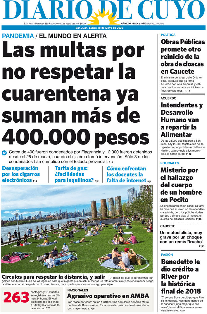 Diario de Cuyo | HOME | Noticias Tapa Edición 18 de Mayo del 2020 Por Redacción Diario de Cuyo 17/05/2020 · 0:00 Escuchar la noticia Escuchar la noticia Your browser doesn’t support HTML5 audio Ver los comentarios ›