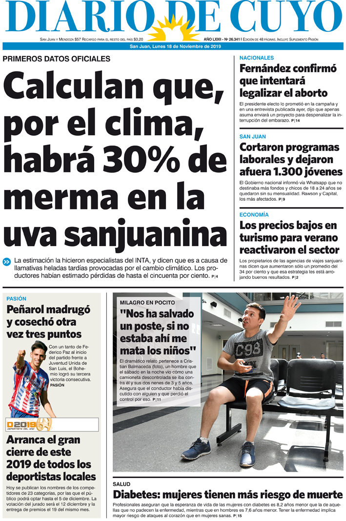 Diario de Cuyo | HOME | Noticias | Tapa Edición Tapa Edición 18 de Noviembre 2019 Por Redacción Diario de Cuyo 18/11/2019 · 0:00 Escuchar la noticia Escuchar la noticia Your browser doesn’t support HTML5 audio Tapa Edición Ver los comentarios ›