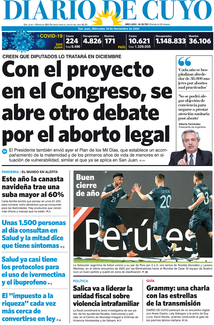 Diario de Cuyo | HOME | Noticias Tapa Edición 18 de Noviembre del 2020 Por Redacción Diario de Cuyo 17/11/2020 · 0:00 Escuchar la noticia Escuchar la noticia Your browser doesn’t support HTML5 audio Ver los comentarios ›
