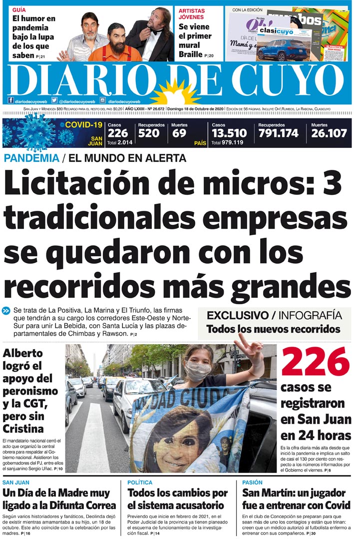 Diario de Cuyo | HOME | Noticias | Tapa Edición Tapa Edición 18 de Octubre de 2020 Por Redacción Diario de Cuyo 17/10/2020 · 0:00 Escuchar la noticia Escuchar la noticia Your browser doesn’t support HTML5 audio Tapa Edición Ver los comentarios ›
