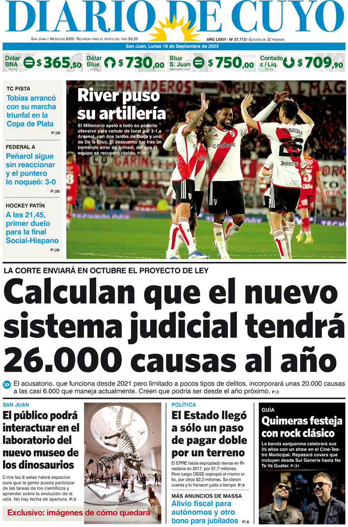 Diario de Cuyo | HOME | Noticias Tapa Edición 18 de Septiembre del 2023 Por Redacción Diario de Cuyo 17/09/2023 · 0:00 Escuchar la noticia Escuchar la noticia Your browser doesn’t support HTML5 audio Ver los comentarios ›