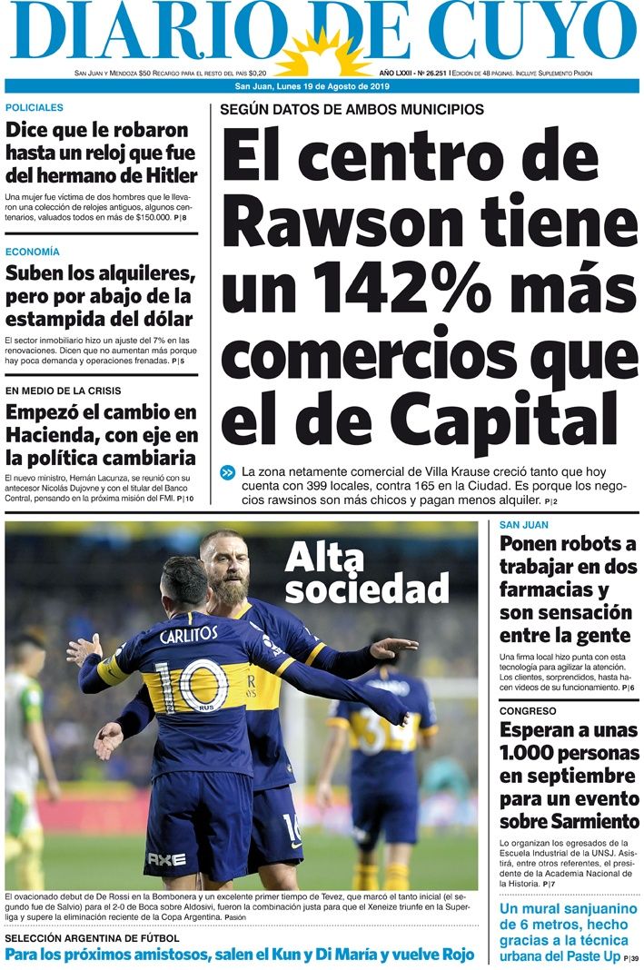 Diario de Cuyo | HOME | Noticias Tapa Edición 19 de Agosto 2019 Por Redacción Diario de Cuyo 19/08/2019 · 0:00 Escuchar la noticia Escuchar la noticia Your browser doesn’t support HTML5 audio Ver los comentarios ›