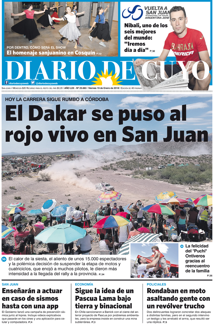 Diario de Cuyo | HOME | Noticias | Tapa Edición Tapa Edición 19 de Enero del 2018 Por Redacción Diario de Cuyo 19/01/2018 · 0:00 Escuchar la noticia Escuchar la noticia Your browser doesn’t support HTML5 audio Tapa Edición Ver los comentarios ›