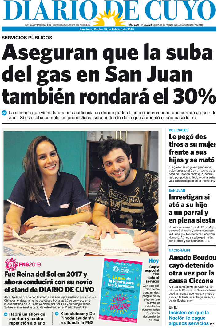 Diario de Cuyo | HOME | Noticias | Tapa Edición Tapa Edición 19 de Febrero 2019 Por Redacción Diario de Cuyo 18/02/2019 · 0:00 Escuchar la noticia Escuchar la noticia Your browser doesn’t support HTML5 audio Tapa Edición Ver los comentarios ›