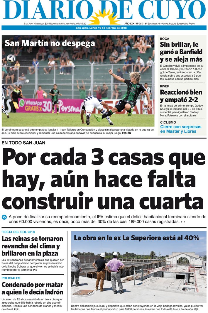 Diario de Cuyo | HOME | Noticias | Tapa Edición Tapa Edición 19 de Febrero del 2018 Por Redacción Diario de Cuyo 19/02/2018 · 0:00 Escuchar la noticia Escuchar la noticia Your browser doesn’t support HTML5 audio Tapa Edición Ver los comentarios ›