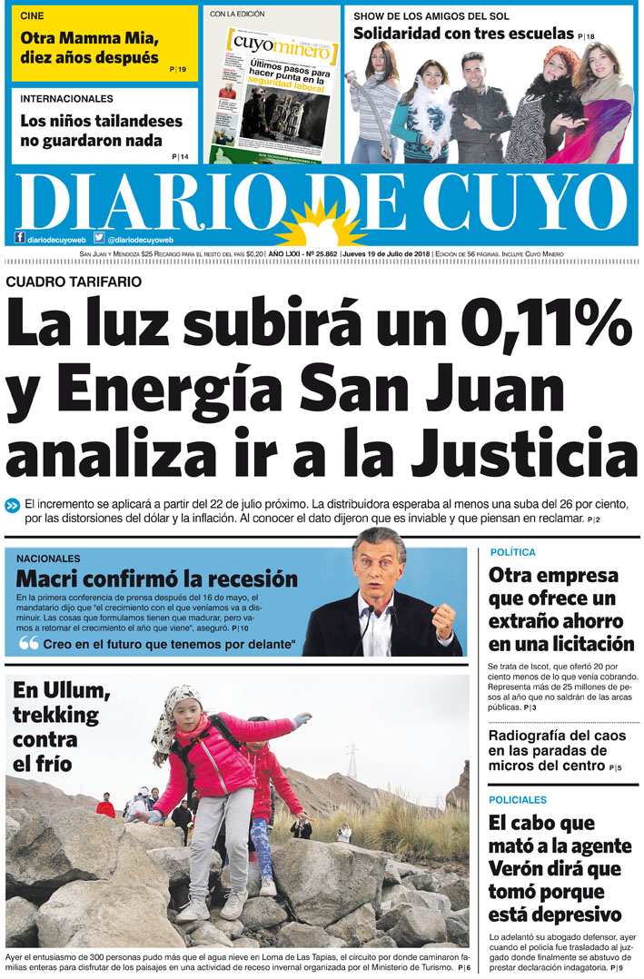 Diario de Cuyo | HOME | Noticias | Tapa Edición Tapa Edición 19 de Julio 2018 Por Redacción Diario de Cuyo 18/07/2018 · 0:00 Escuchar la noticia Escuchar la noticia Your browser doesn’t support HTML5 audio Tapa Edición Ver los comentarios ›