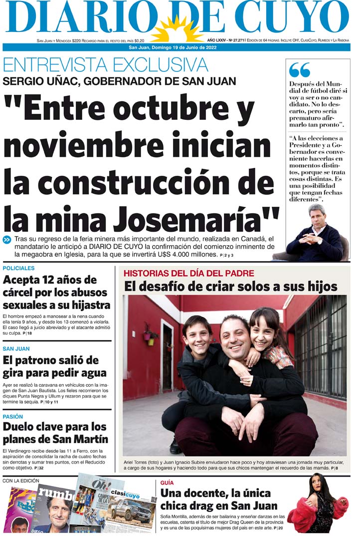 Diario de Cuyo | HOME | Noticias Tapa Edición 19 de Junio de 2022 Por Redacción Diario de Cuyo 18/06/2022 · 0:00 Escuchar la noticia Escuchar la noticia Your browser doesn’t support HTML5 audio Ver los comentarios ›
