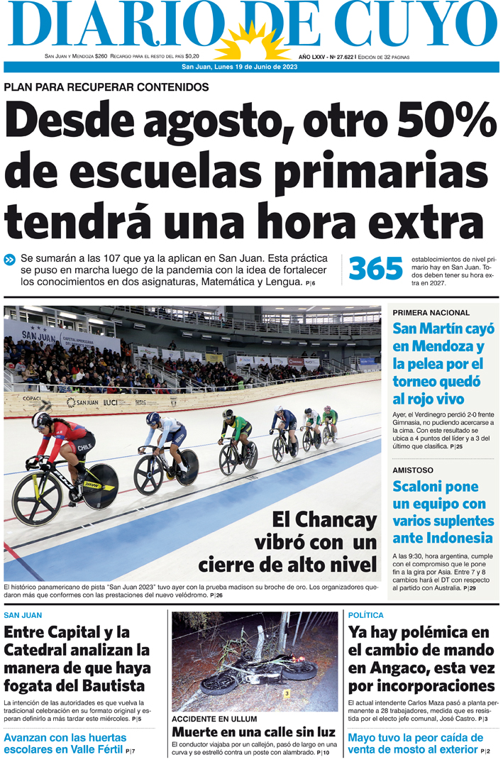 Diario de Cuyo | HOME | Noticias Tapa Edición 19 de Junio de 2023 Por Redacción Diario de Cuyo 18/06/2023 · 0:00 Escuchar la noticia Escuchar la noticia Your browser doesn’t support HTML5 audio Ver los comentarios ›
