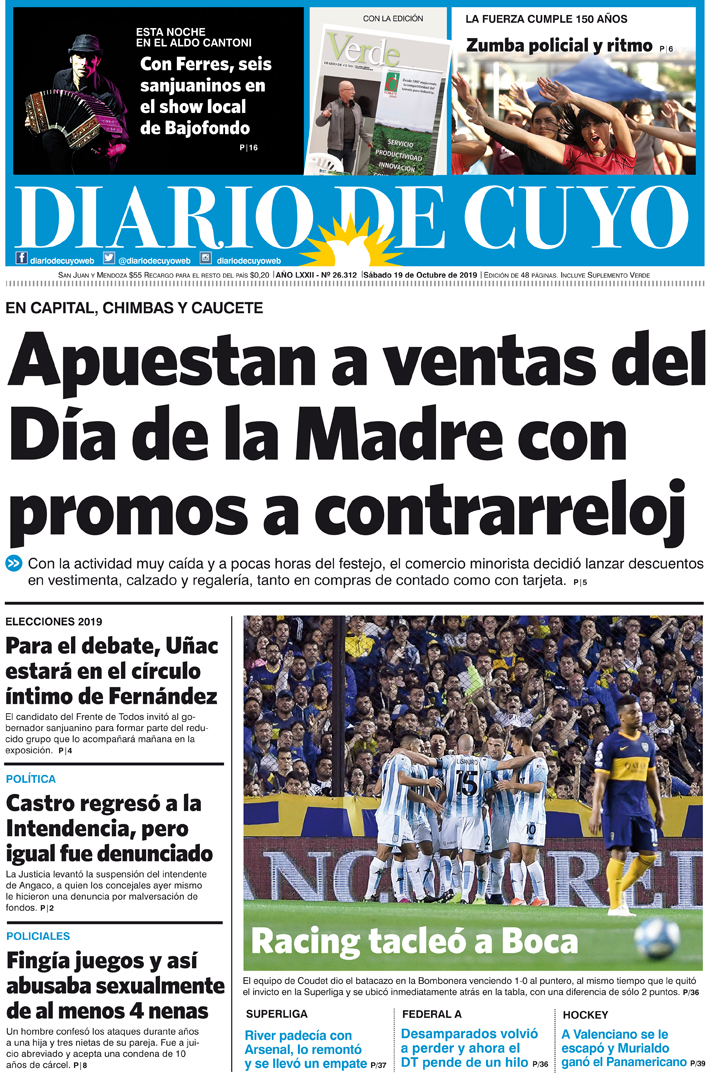 Diario de Cuyo | HOME | Noticias | Tapa Edición Tapa Edición 19 de Octubre 2019 Por Redacción Diario de Cuyo 19/10/2019 · 0:00 Escuchar la noticia Escuchar la noticia Your browser doesn’t support HTML5 audio Tapa Edición Ver los comentarios ›