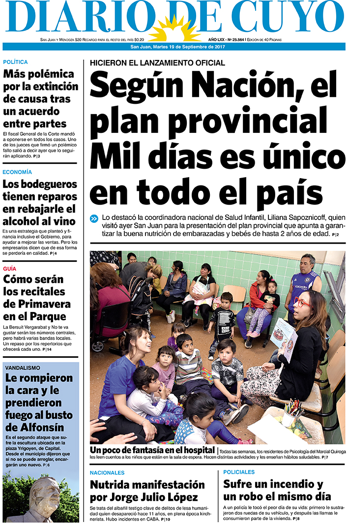 Diario de Cuyo | HOME | Noticias | Tapa Edición Tapa Edición 19 de Septiembre del 2017 Por Redacción Diario de Cuyo 18/09/2017 · 0:00 Escuchar la noticia Escuchar la noticia Your browser doesn’t support HTML5 audio Tapa Edición Ver los comentarios ›