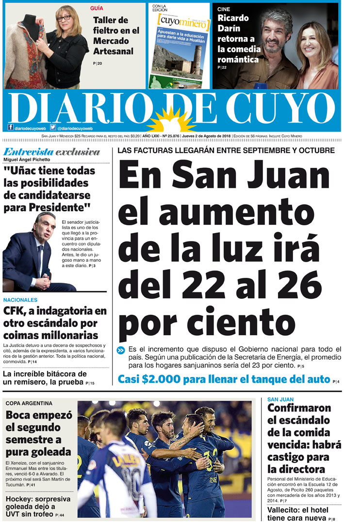 Diario de Cuyo | HOME | Noticias | Tapa Edición Tapa Edición 2 de Agosto 2018 Por Redacción Diario de Cuyo 02/08/2018 · 0:00 Escuchar la noticia Escuchar la noticia Your browser doesn’t support HTML5 audio Tapa Edición Ver los comentarios ›