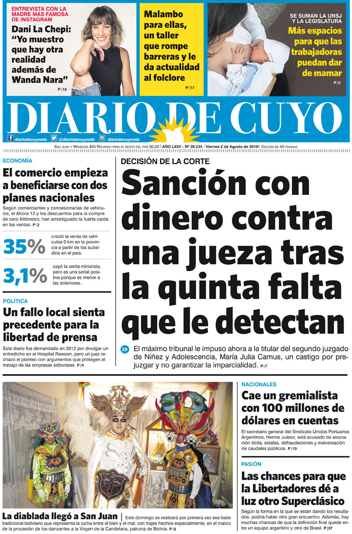 Diario de Cuyo | HOME | Noticias | Tapa Edición Tapa Edición 2 de agosto 2019 Por Redacción Diario de Cuyo 01/08/2019 · 0:00 Escuchar la noticia Escuchar la noticia Your browser doesn’t support HTML5 audio Tapa Edición Ver los comentarios ›