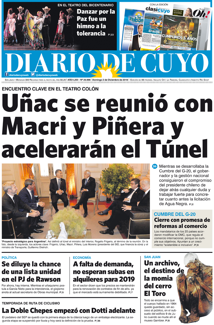 Diario de Cuyo | HOME | Noticias | Tapa Edición Tapa Edición 2 de Diciembre 2018 Por Redacción Diario de Cuyo 01/12/2018 · 0:00 Escuchar la noticia Escuchar la noticia Your browser doesn’t support HTML5 audio Tapa Edición Ver los comentarios ›