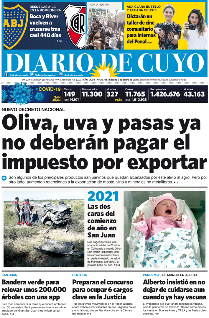 Diario de Cuyo | HOME | Noticias | Tapa Edición Tapa Edición 2 de Enero de 2021 Por Redacción Diario de Cuyo 01/01/2021 · 0:00 Escuchar la noticia Escuchar la noticia Your browser doesn’t support HTML5 audio Tapa Edición Ver los comentarios ›
